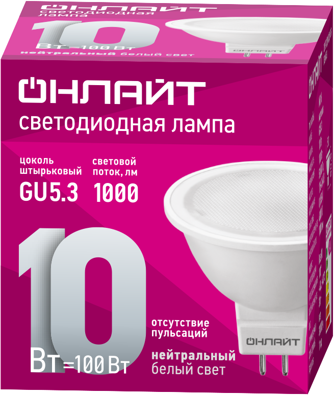 Лампа светодиодная 61 890 OLL-MR16-10-230-4K-GU5.3 10Вт 4000К нейтр. бел. GU5.3 1000лм 176-264В ОНЛАЙТ 61890