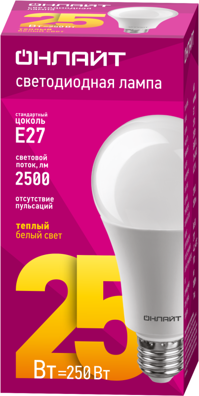Лампа светодиодная 61 953 OLL-A60-25-230-2.7K-E27 25Вт грушевидная 2700К тепл. бел. E27 2500лм 176-264В ОНЛАЙТ 61953
