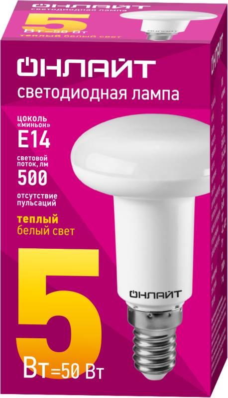 Лампа светодиодная 71 651 OLL-R50-5-230-2.7K-E14 5Вт 2700К тепл. бел. E14 500лм 176-264В ОНЛАЙТ 71651
