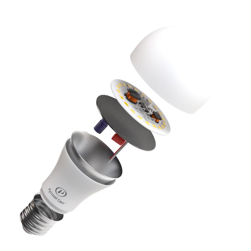 Лампа светодиодная RS A60 E27 10W 220-240V 6500К 10Вт 1000лм Ra 90 грушевидная Русский Свет 15010345039