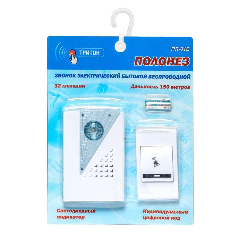 Звонок беспроводной Полонез 32 мелодии 150м 2AAх1.5В МОНОМАХ ПЛ-01Б