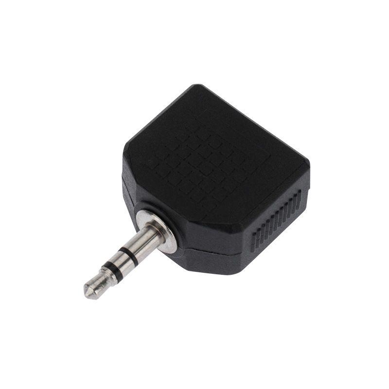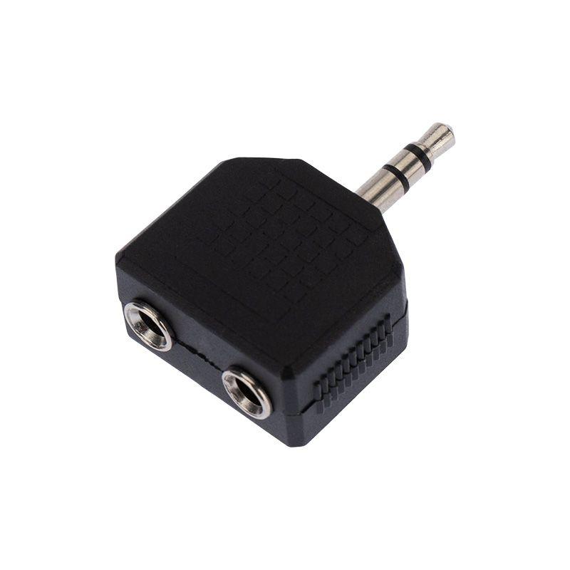 С одной стороны адаптера располагается штекер с разъемом 3,5мм стерео, а с другой – два гнезда с разъемами 3,5мм стерео.