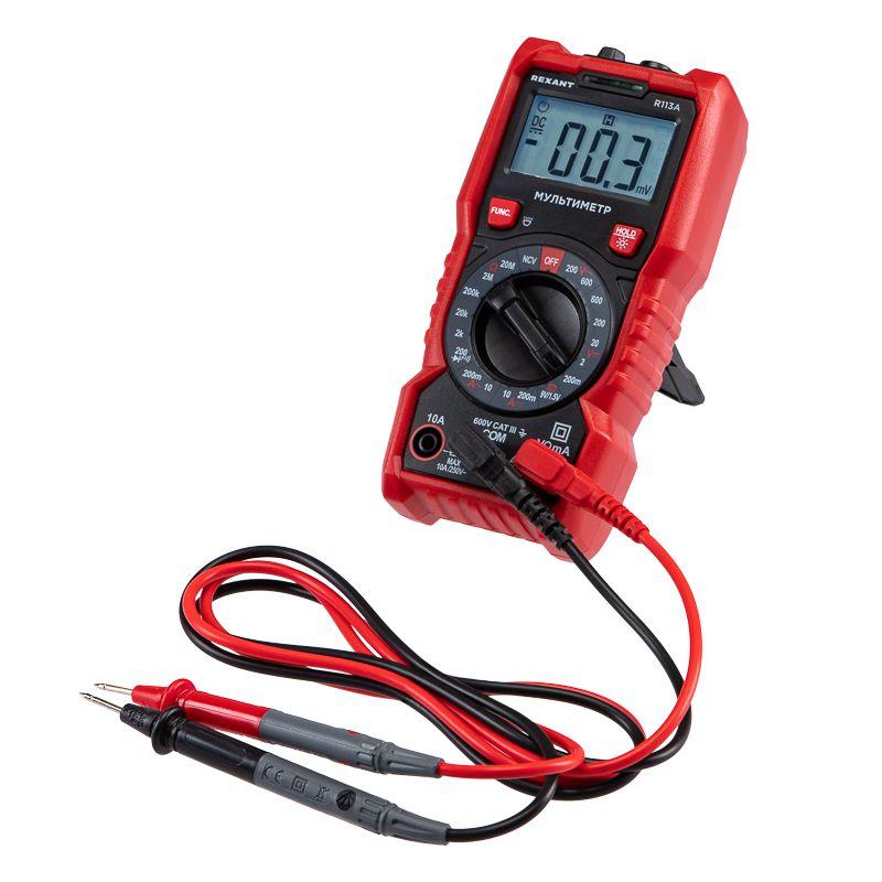 Мультиметр имеет ручной выбор диапазонов измерений. Оснащен бесконтактным детектором напряжения NCV с индикацией.