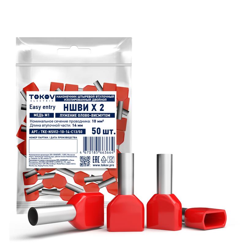Наконечник штыревой втулочный изолированный двойн. НШВИ(2) 10-14 TOKOV ELECTRIC TKE-NSVI2-10-14-C13/50