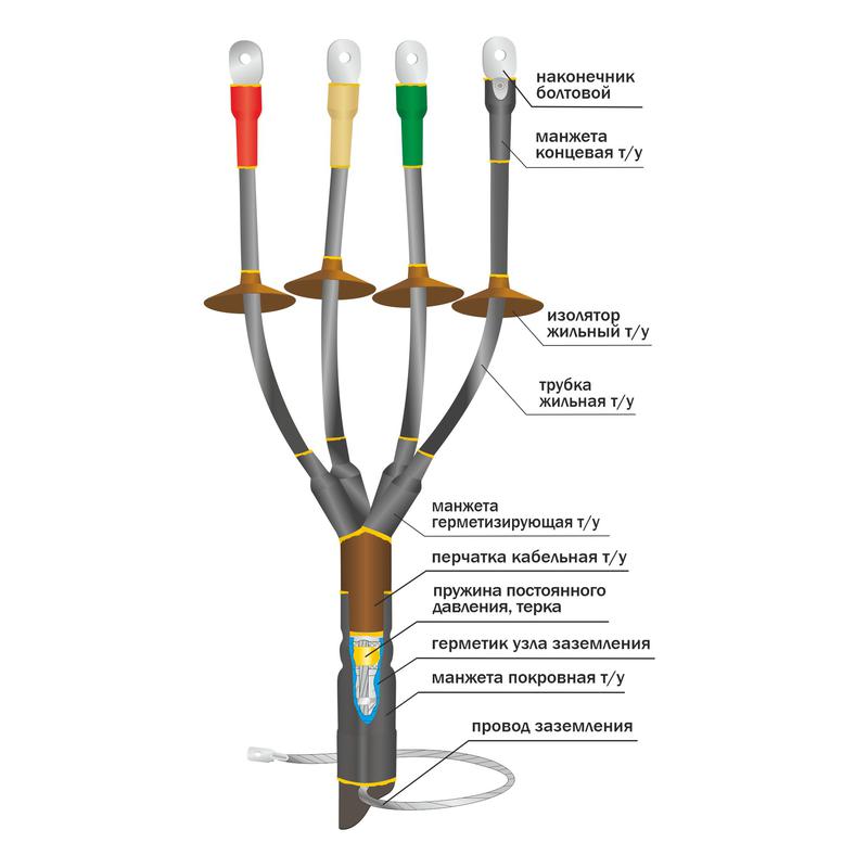 Муфта кабельная концевая наружн. уст. 1кВ 1КНТпН-4х(70-120) с болтов. наконечн. Нева-Транс Комплект 22020097