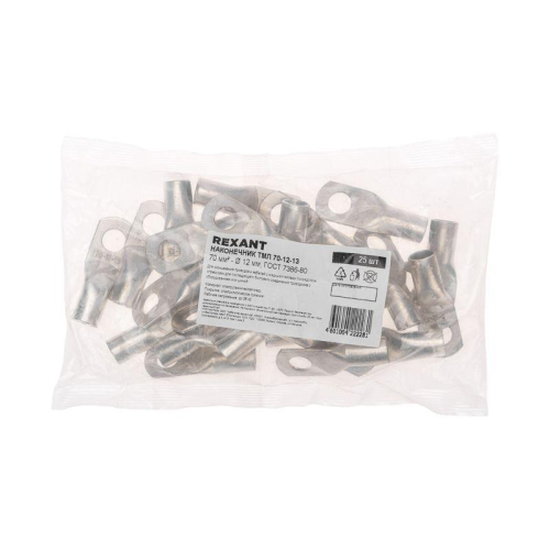 Наконечник медный луженый ТМЛ 70кв.мм 70-12-13 d12мм ГОСТ 7386-80 (уп.25шт) Rexant 07-5326-5