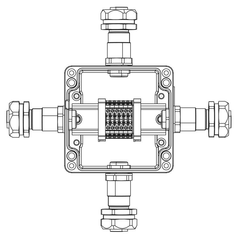 Коробка клеммная взрывозащ. TBE-A-12-(6xCBC.2)-1xKAEPM2MHK-20(A)-1xKAEPM2MHK-20(B)-1xKAEPM2MHK-20(C)-1xKAEPM2MHK-20(D)1Ex e IIC Т5 Gb / Ex tb IIIC T95град.C Db IP66 алюм. DKC 1201.121.22.11A
