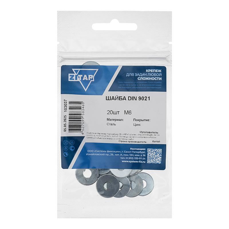 Шайба кузовная М6 DIN 9021 цинк. (пакет) (уп.20шт) Zitar 103037