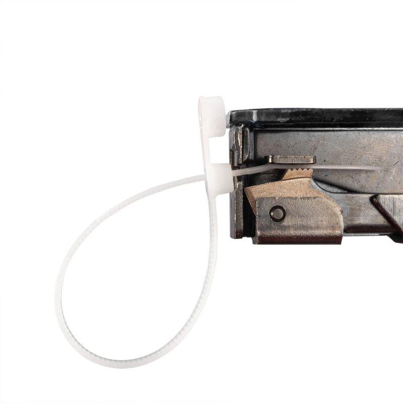 • Конец стяжки имеет конструктивное отверстие для крепежа хомута к рабочей поверхности при помощи саморезов