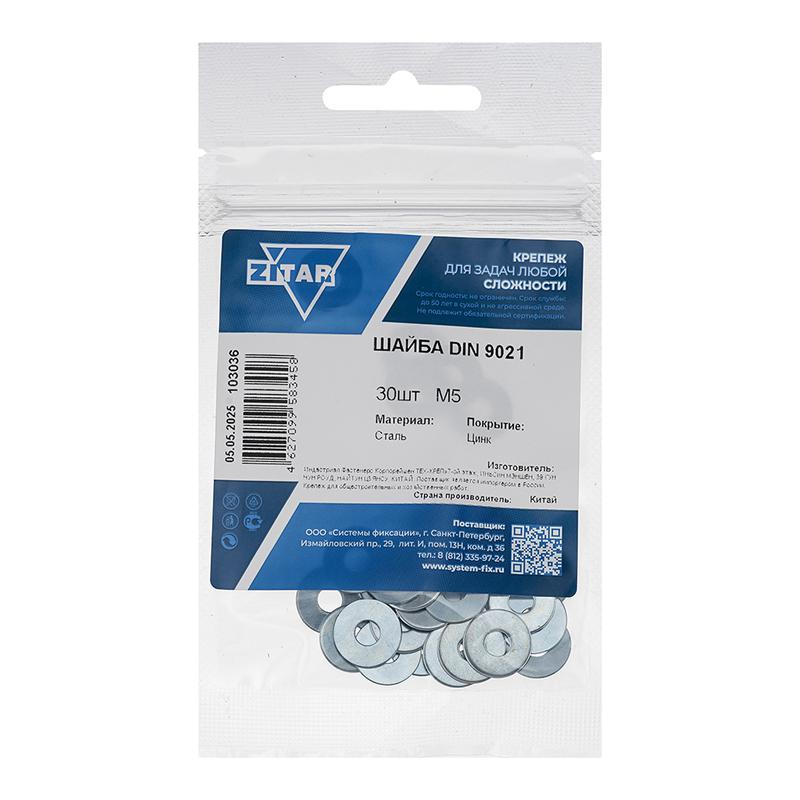 Шайба кузовная М5 DIN 9021 цинк. (пакет) (уп.30шт) Zitar 103036