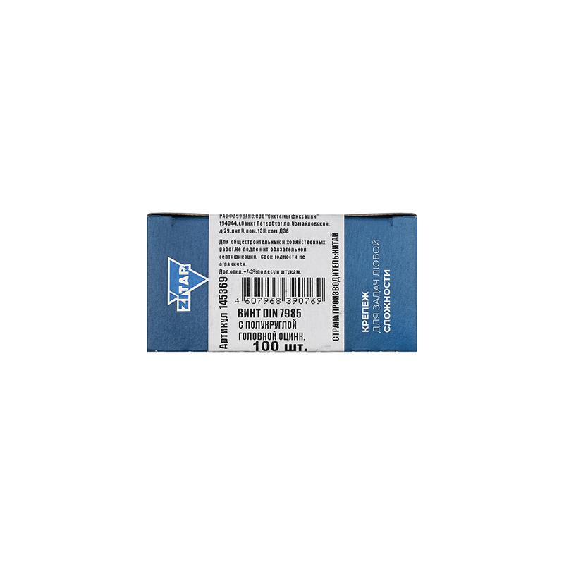 Винт с полукруглой головкой М6х10 DIN 7985 оцинк. (уп.100шт) Zitar 145369