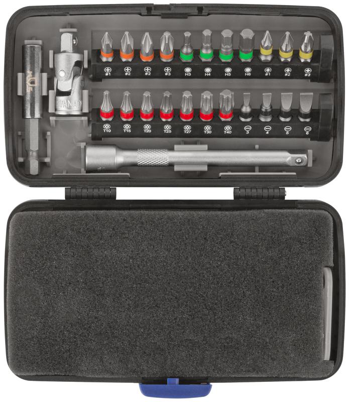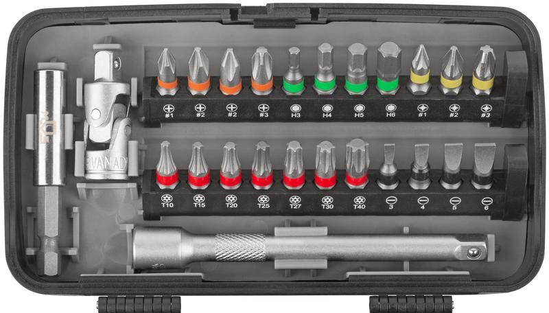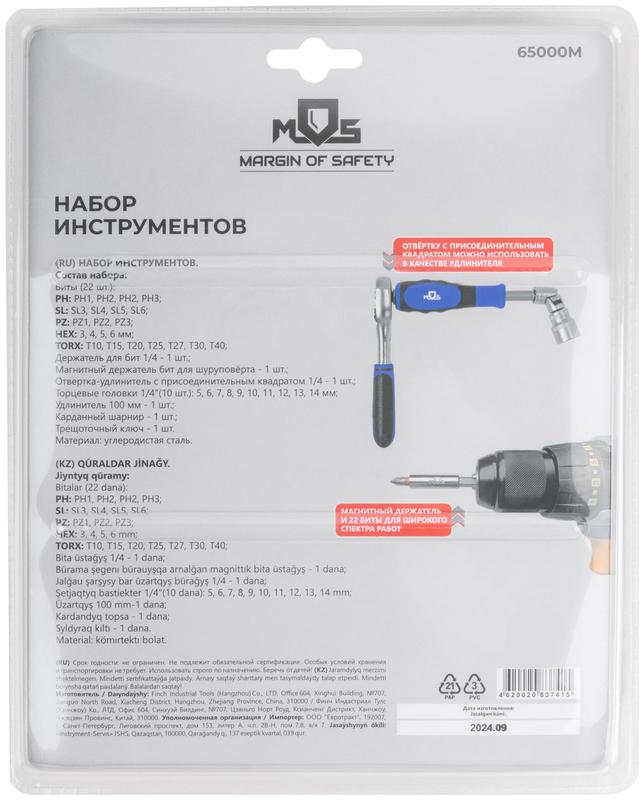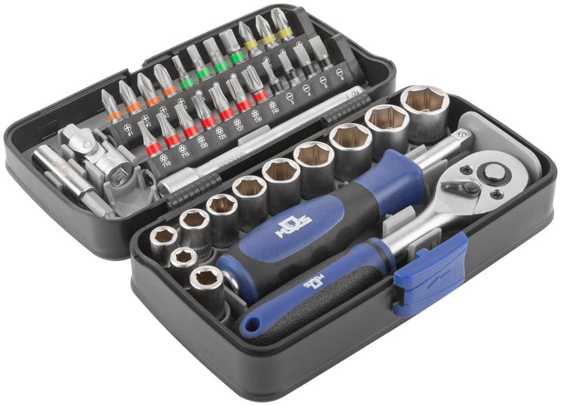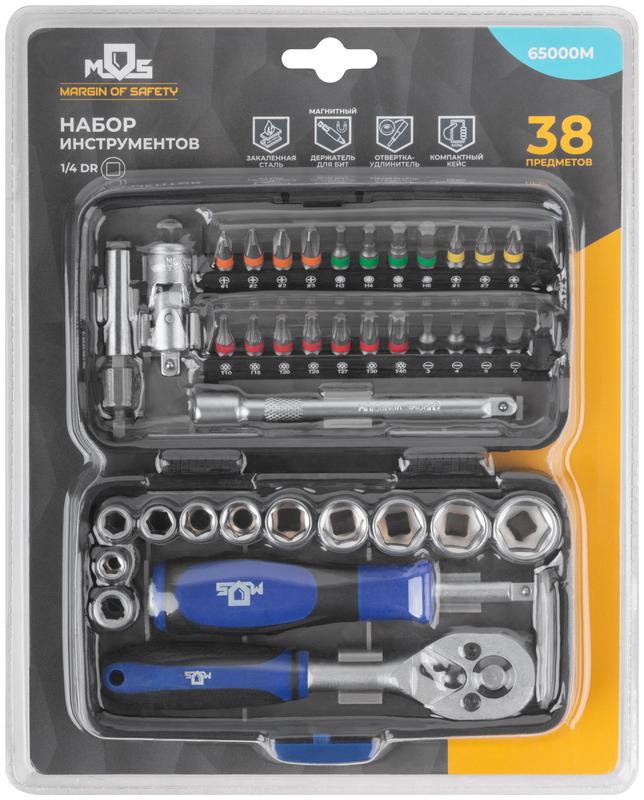 Мини-набор инструмента (биты; головки; вороток; удлинитель) 38шт пластиковый кейс MOS 65000М