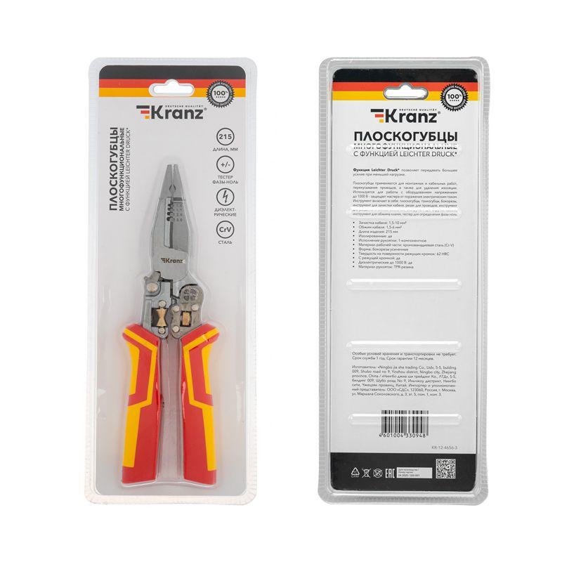 Плоскогубцы многофункциональные диэлектрические PRO 210мм с тестером Kranz KR-12-4656-3