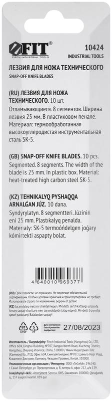 Набор лезвий для ножа технического 25мм 8 сегментов сталь SK5 (уп.10шт) FIT 10424