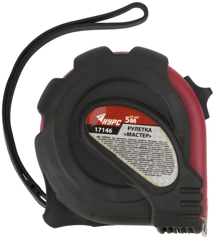 Рулетка Мастер 5мх25мм прорезиненный корпус КУРС 17146