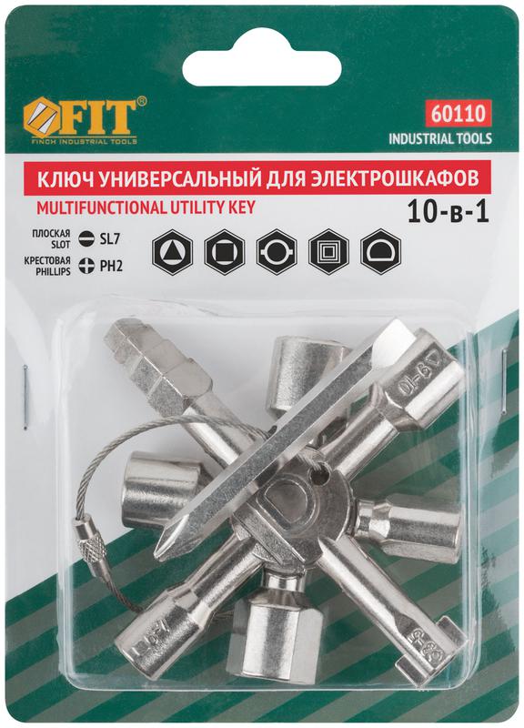Ключ универсальный для электрошкафов 10-в-1 двусторонняя CrV бита РН2/SL7 FIT 60110
