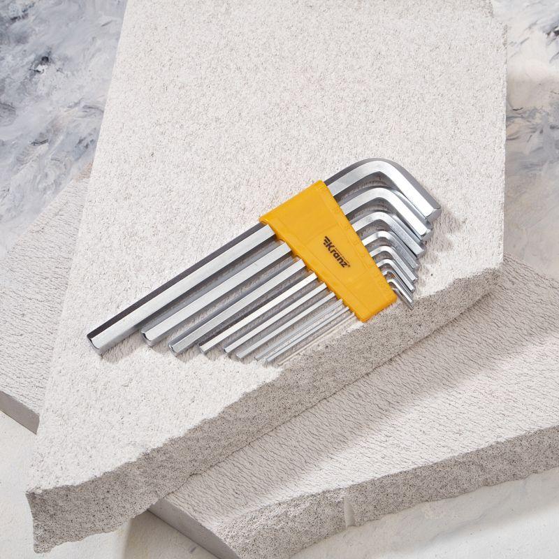 Набор ключей имбусовых HEX 2.0-12мм CrV 9шт удлиненные Kranz KR-12-5213