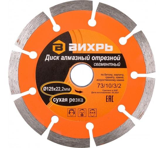 Диск отрезной алмазный сегментный 125х22.2мм сухая резка Вихрь 73/10/3/2