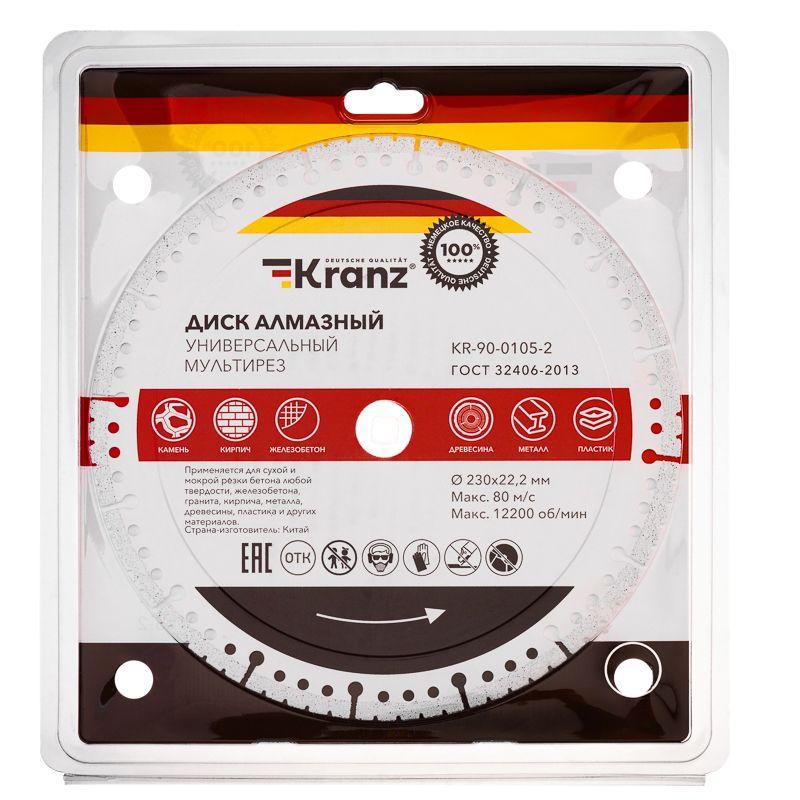 Диск алмазный универс. профессиональный Мультирез 230х22.2мм вакуумное спекание Kranz KR-90-0105-2