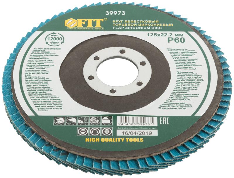 Круг лепестковый торцевой циркониевый плоский 125мм P 60 FIT 39973
