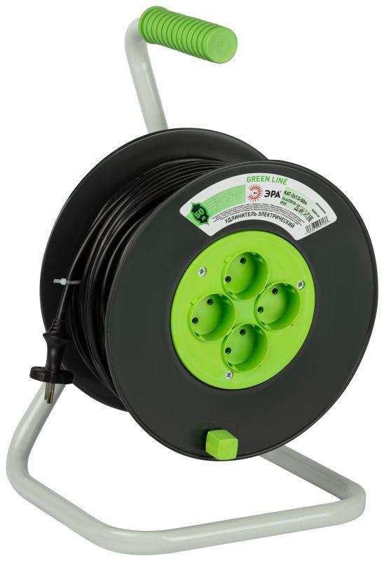 Удлинитель на пластик. катушке 4х50м без заземл. KAT-2x1.5-50m Greenline ПВС 2х1.5 Эра Б0065097