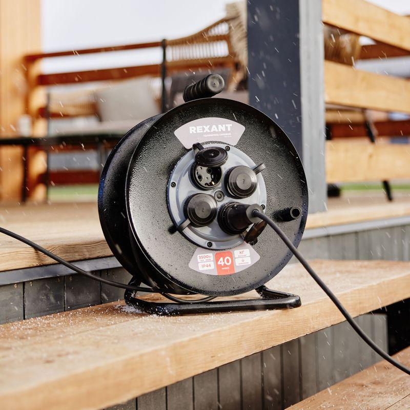 Удлинитель на метал. катушке 4х40 с заземл. IP44 КГ 3х1.5 c защ. крышкой Rexant 13-5012