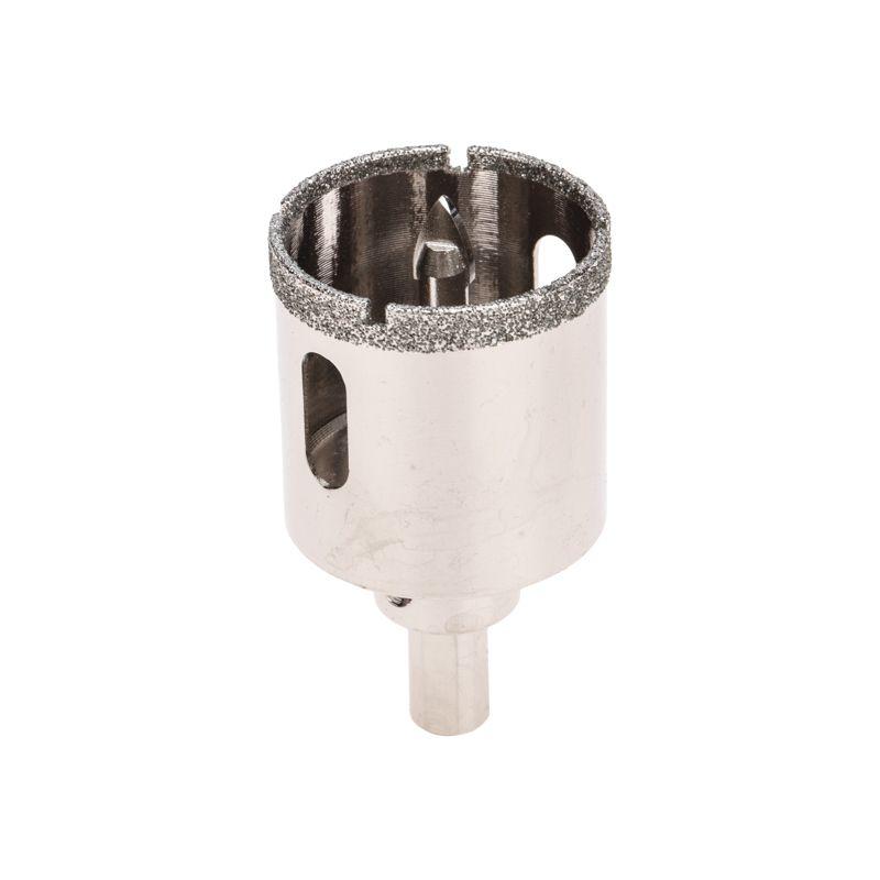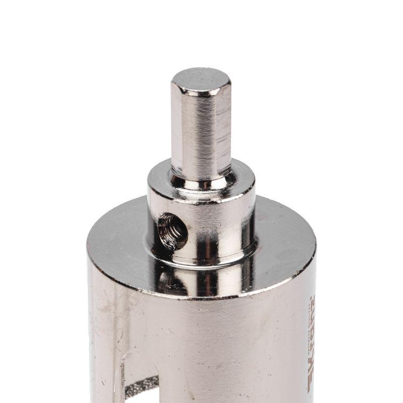 Покрытие алмазной коронки выполнено гальваническим способом в два слоя, что обеспечивает эффективное сверление и продолжительный рабочий ресурс инструмента. Равномерное распределение алмазов по режущей кромке гарантирует аккуратное сверление материала без трещин и сколов.