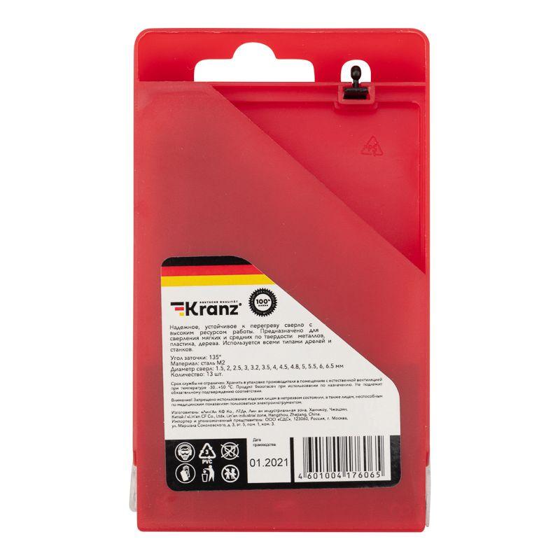 Набор сверл по металлу (HSS) диаметр 1.5-6.5мм (13шт) Kranz KR-91-0631