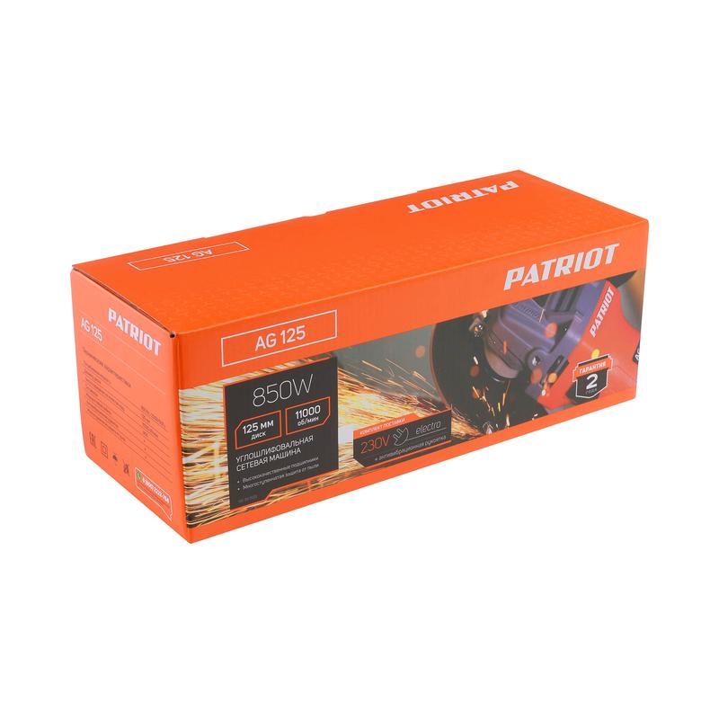 Машина шлифовальная угловая УШМ AG 125 тонкий корпус пылезащ. 850Вт Диск 125мм PATRIOT 110301125