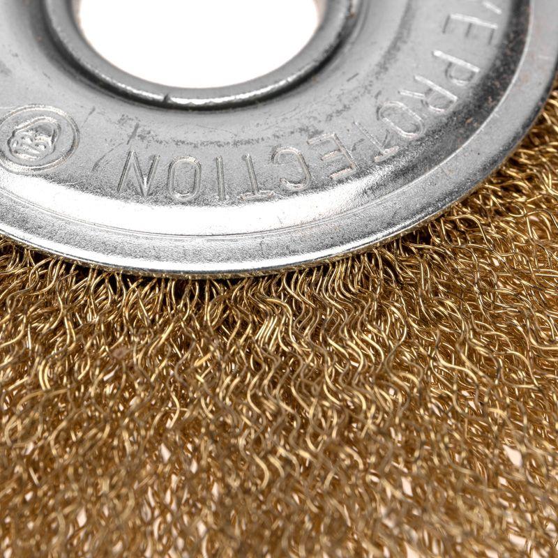 Витая щетина из латунированной проволоки оптимально подходит для аккуратной обработки и шлифовки, позволяет удалить тонкий слой материала, а также придать поверхности глянцевый блеск. Латунированная проволока имеет высокую устойчивость к коррозии, а при работе возникает меньше искр.