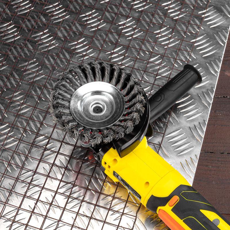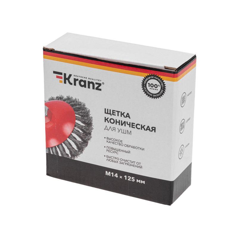 Щетка коническая для УШМ крученая стальная проволока 125мм М14 Kranz KR-91-1203