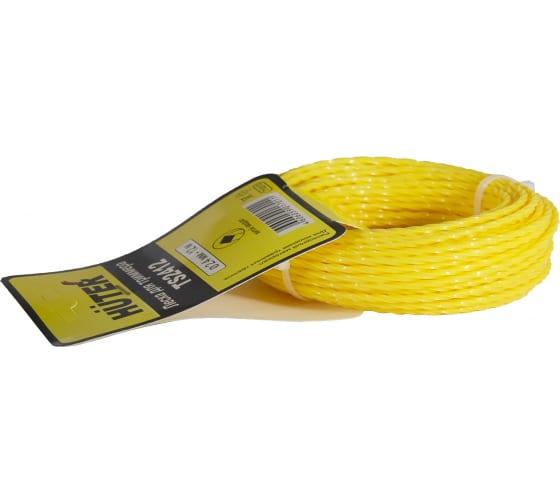 Леска Huter TS2412 с сечением в форме витого квадрата, диаметр 2,4 мм, длина 12 м. Подходит для триммеров: