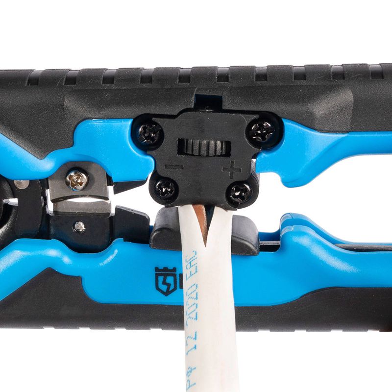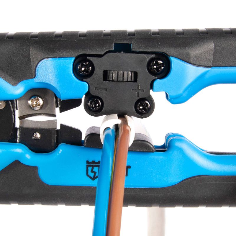 • Съемный регулятор длины снятия изоляции с винтом, фиксирующим положение регулятора