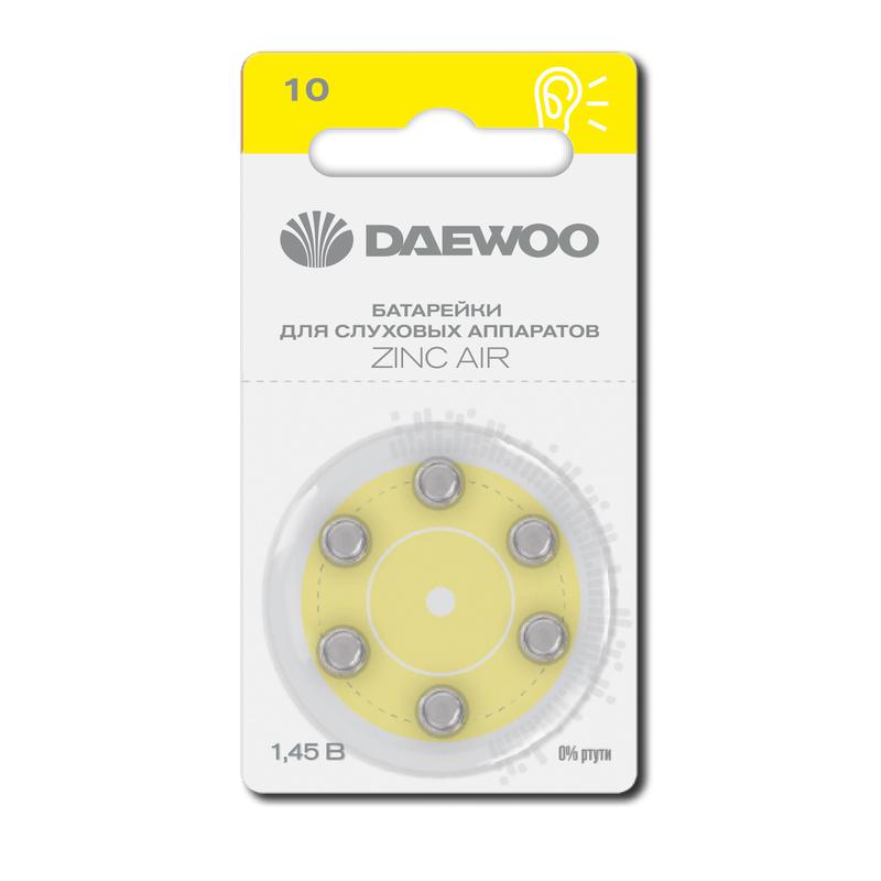 Элемент питания воздушно-цинковый ZA10/PR70 1.45В BL-6 (блист.6шт) для слуховых аппаратов DAEWOO 5060333
