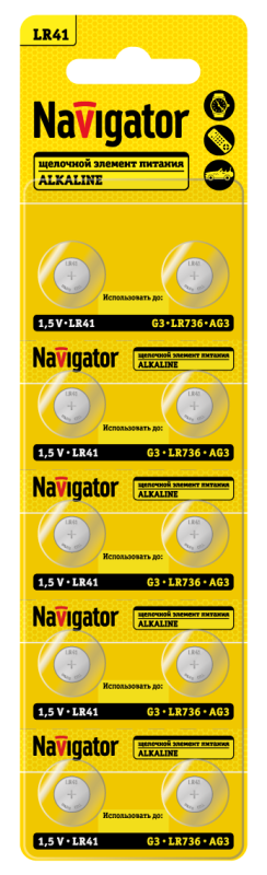 Элемент питания алкалиновый "таблетка" 95 661 NBT-04 (LR41 AG3 LR736 BP10) (блист.10шт) Navigator 95661