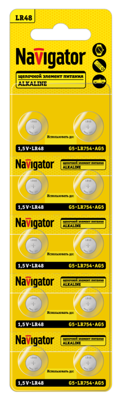 Элемент питания алкалиновый "таблетка" 95 669 NBT-12 (LR48 AG5 LR754 BP10) (блист.10шт) Navigator 95669