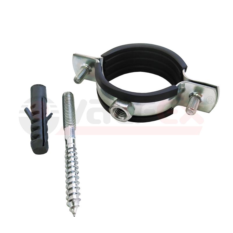 Хомут РМ d32-36мм 1дюйм с резиновым уплотнением (в компл. шпилька М8х80 и дюбель) оцинк. (110) VALFEX 45WR-35-М