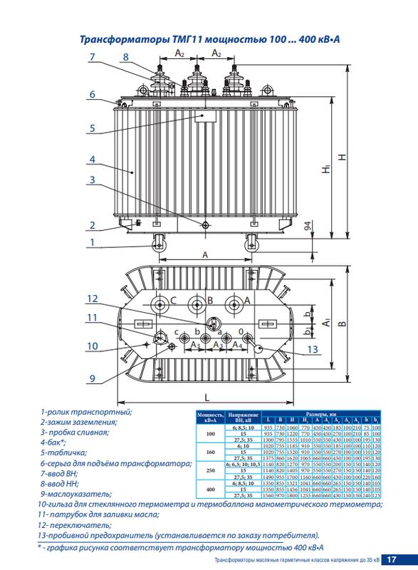 - ТМГ11 серия стандарт используемый с 2000г – обмотки алюминевая проволока, использовать по умолчанию до 400кВа включительно, начиная с 630кВа трансформаторы данной серии дороже следующего поколения.