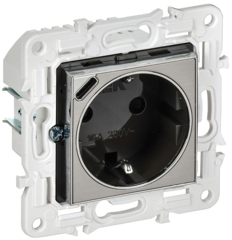 Розетка SKANDY 18Вт 16А с заземл. защ. шторки с USB C SK-R17N никель IEK SK-R14-16-U14-018-K50