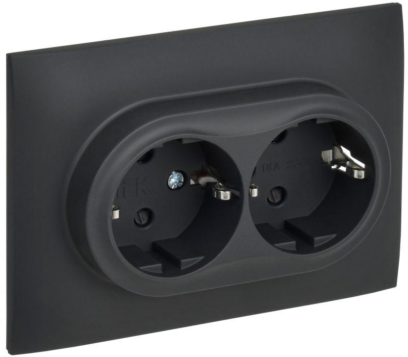 Розетка 2-м SKANDY 16А с заземл. защ. шторки в сборе SK-R07G графит IEK SK-R24-16-K53-F