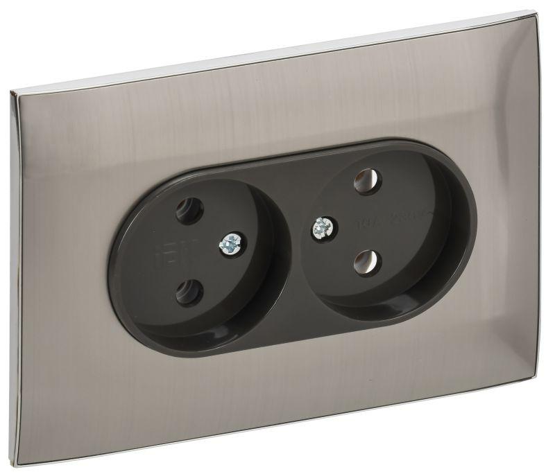 Розетка 2-м SKANDY 10А без заземл. без защ. шторок в сборе SK-R10N никель IEK SK-R20-10-K50-F
