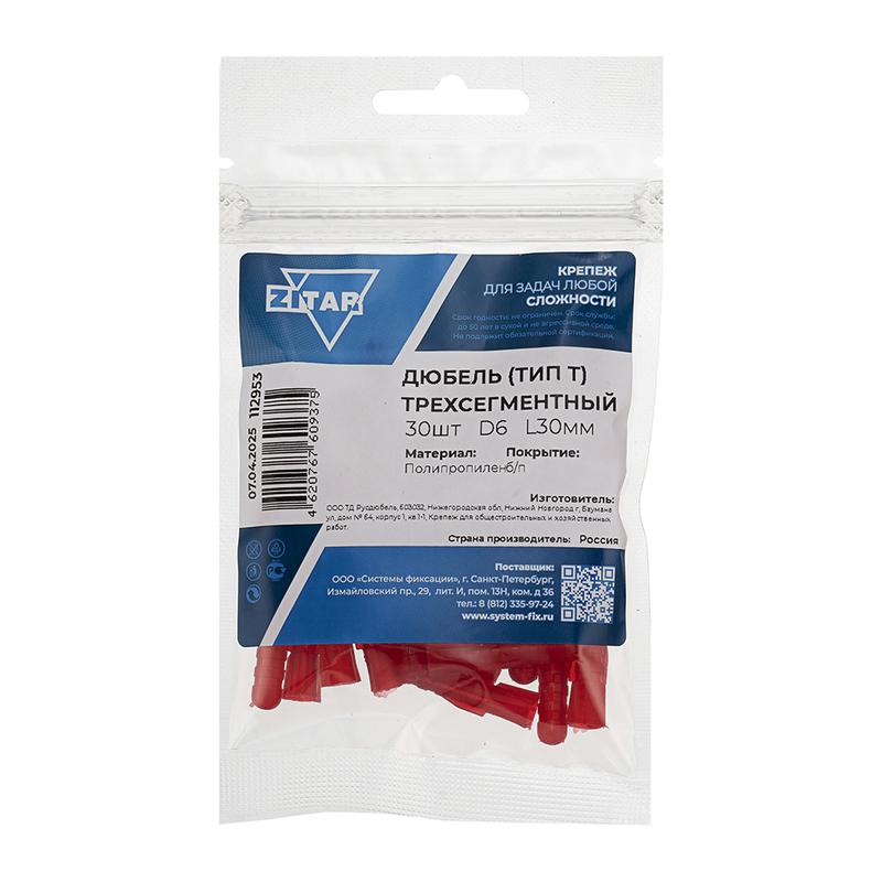 Дюбель распорный 6х30 тип Т трехсегментный (уп.30шт) Tech-Krep/Zitar 112953