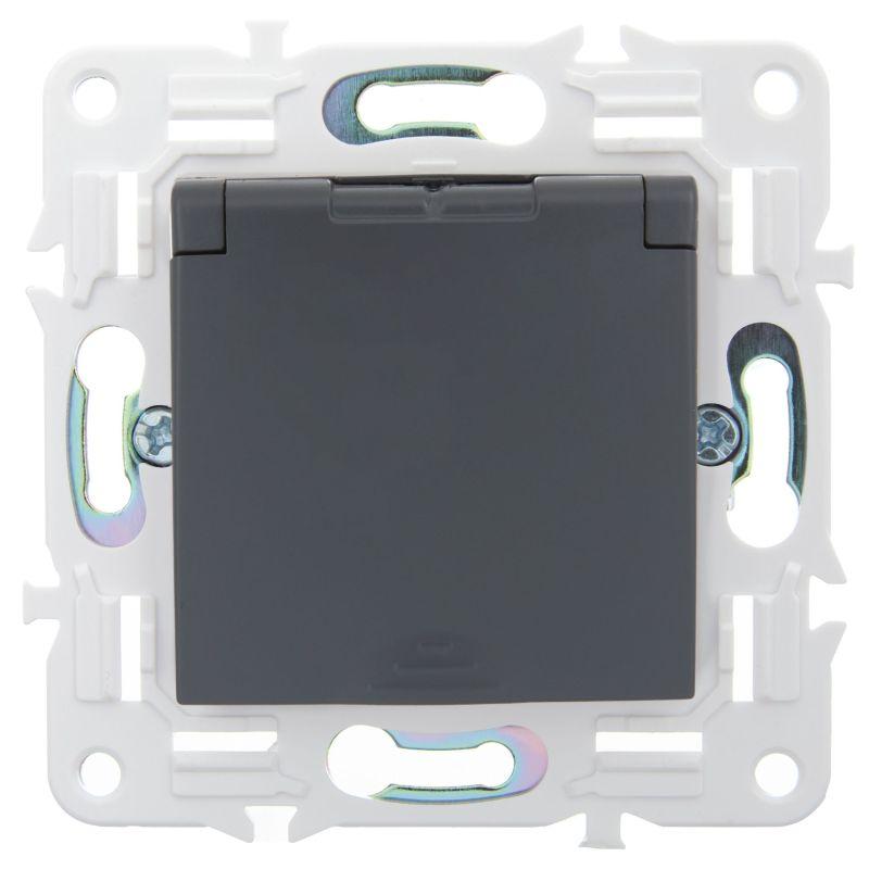 Розетка 1-м SKANDY 16А IP44 с заземл. защ. шторки с крышкой SK-R11T титан IEK SK-R16-16-44-K48