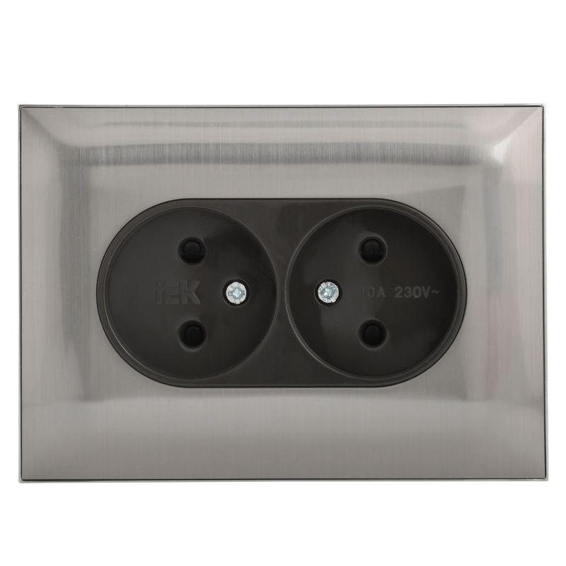 Розетка 2-м SKANDY 10А без заземл. защ. шторки в сборе SK-R09N никель IEK SK-R23-10-K50-F
