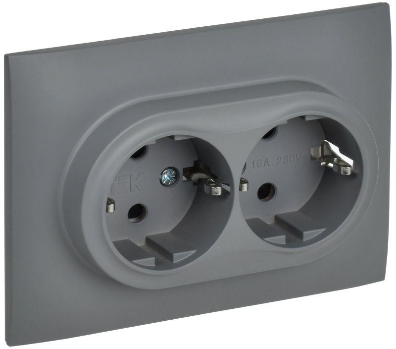 Розетка 2-м SKANDY 16А с заземл. защ. шторки в сборе SK-R07Gr сер. IEK SK-R24-16-K03-F