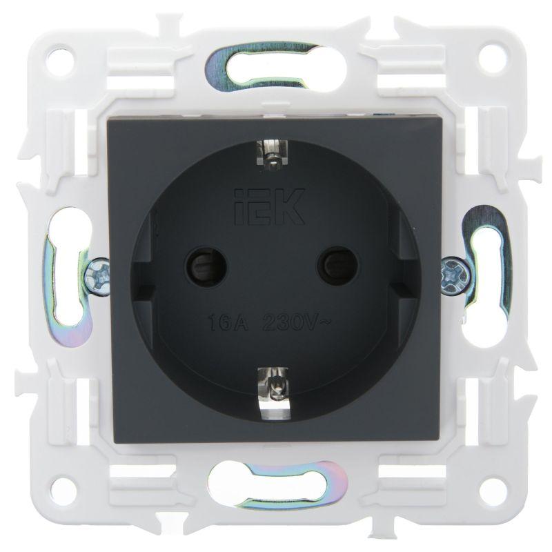 Розетка SKANDY 16А с заземл. защ. шторки безвинт. крепл. SK-R06G графит IEK SK-R14-16-1-K53
