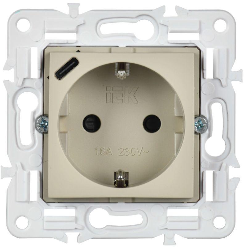 Розетка SKANDY 18Вт 16А с заземл. защ. шторки с USB C SK-R17B беж. IEK SK-R14-16-U14-018-K10