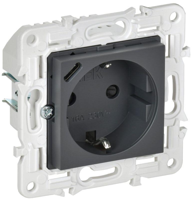 Розетка SKANDY 18Вт 16А с заземл. защ. шторки с USB C SK-R17T титан IEK SK-R14-16-U14-018-K48