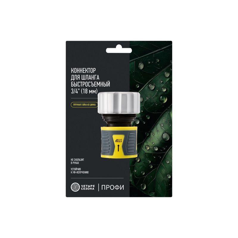Коннектор для шланга быстросъемный 3/4дюйм с аквастопом с зажимной шайбой из цинка ЧЕТЫРЕ СЕЗОНА 62-0307-F