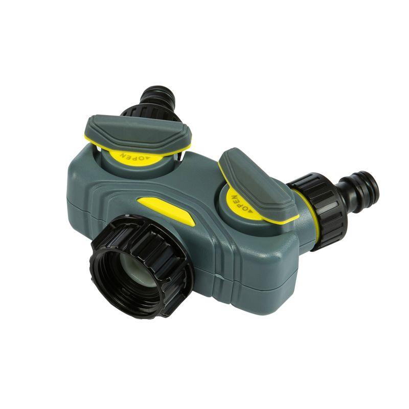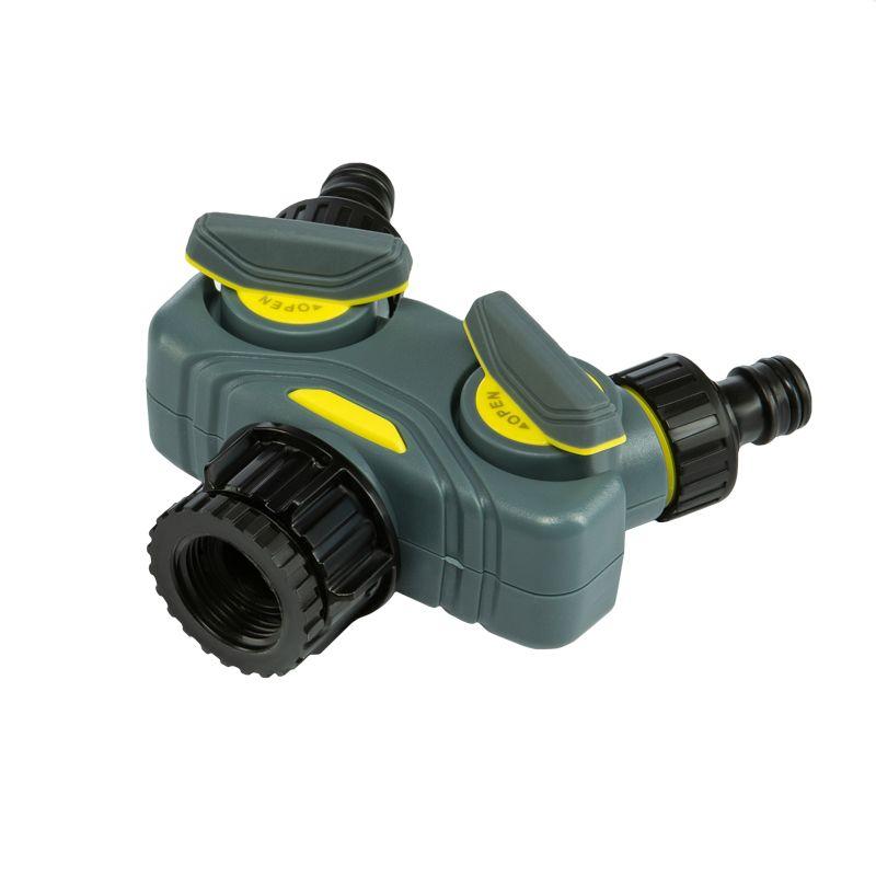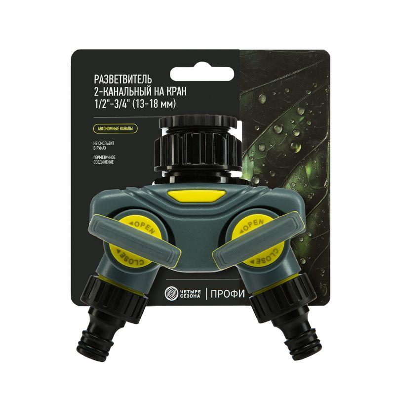 Разветвитель 2-х канальный на кран 1/2дюйм-3/4дюйм ЧЕТЫРЕ СЕЗОНА 62-0223-F